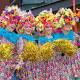 Optocht van loopgroepen tijdens carnaval in Deventer